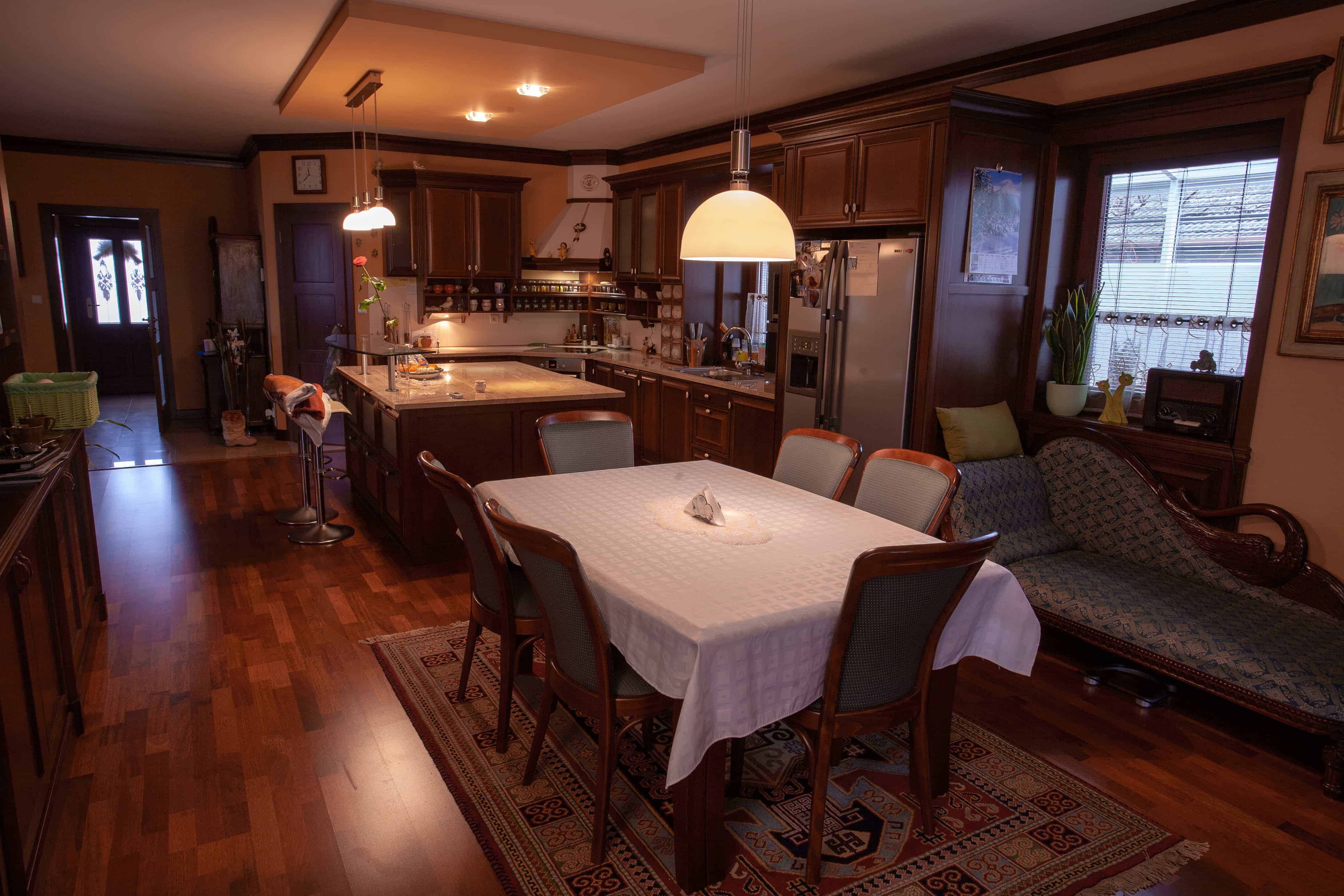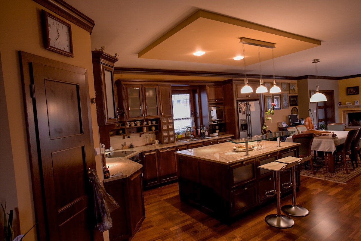 Luxury library + luxury rustic kitchen